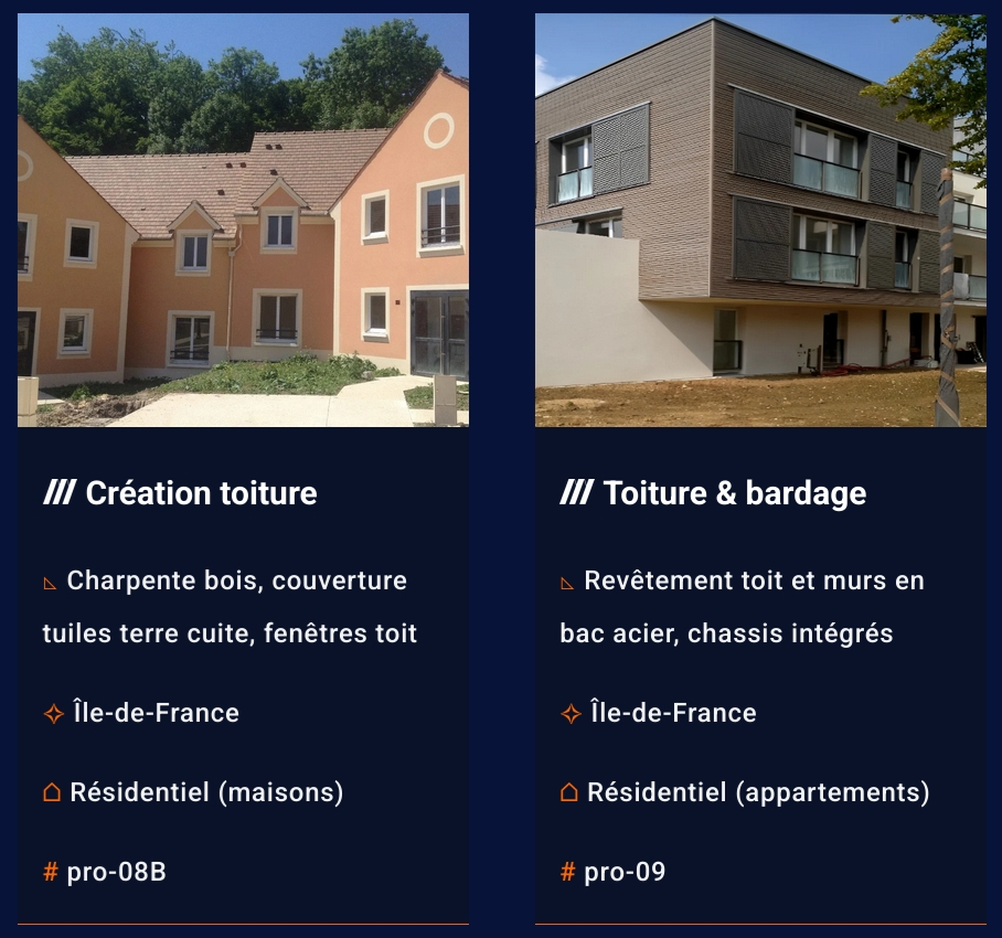 Ces réalisations concernent le secteur du bâtiment mais également quelques chantiers de particuliers.